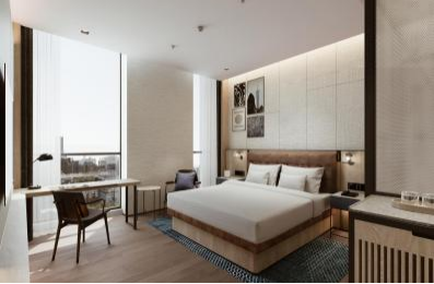 据悉,栈房蓄意不竭福一又喜来登品牌经典摩登派头,中性色彩搭配金属线条与良好石材,营造独具立场的居停氛围。栈房领有212间用心蓄意的客房,罗致全景不雅蓄意,让来宾于房内即可纵览王人市自满,况兼均配备适意床品、55寸LED电视、东说念主体工学沙发等当代化行径,打造舒心拖沓的休憩空间。