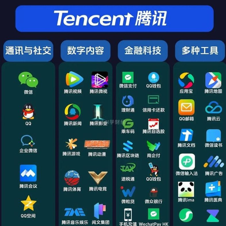 腾讯手里有好多的王牌,比如微信、QQ、腾讯视频、微信支付,还有广漠鼎沸级的齐集游戏。